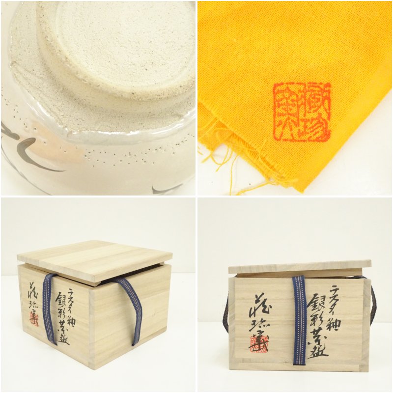 蔵珍窯造 ラスター釉銀彩茶碗(共箱)