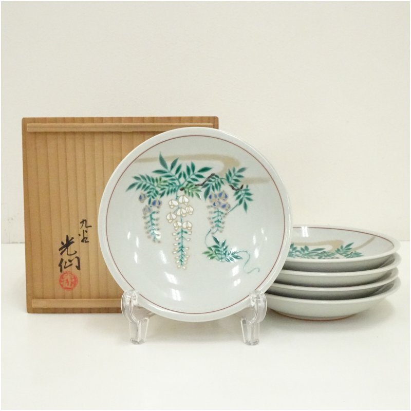 九谷焼 利岡光仙造 銘々皿5客(共箱)