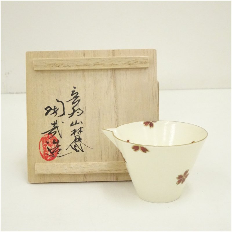 京焼 三代 澤村陶哉造 桜花文片口猪口(共箱) [13-250620c-057a]