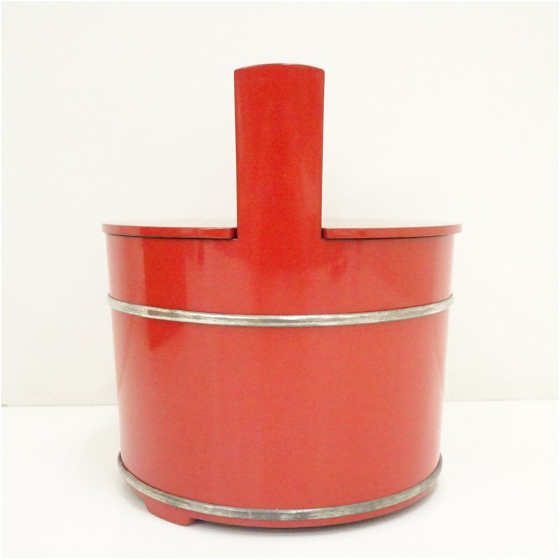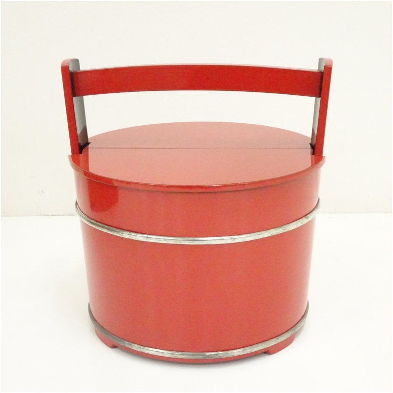 塗師 岡本陽斎造 朱塗手桶水指(共箱) [13-250623c-014a]