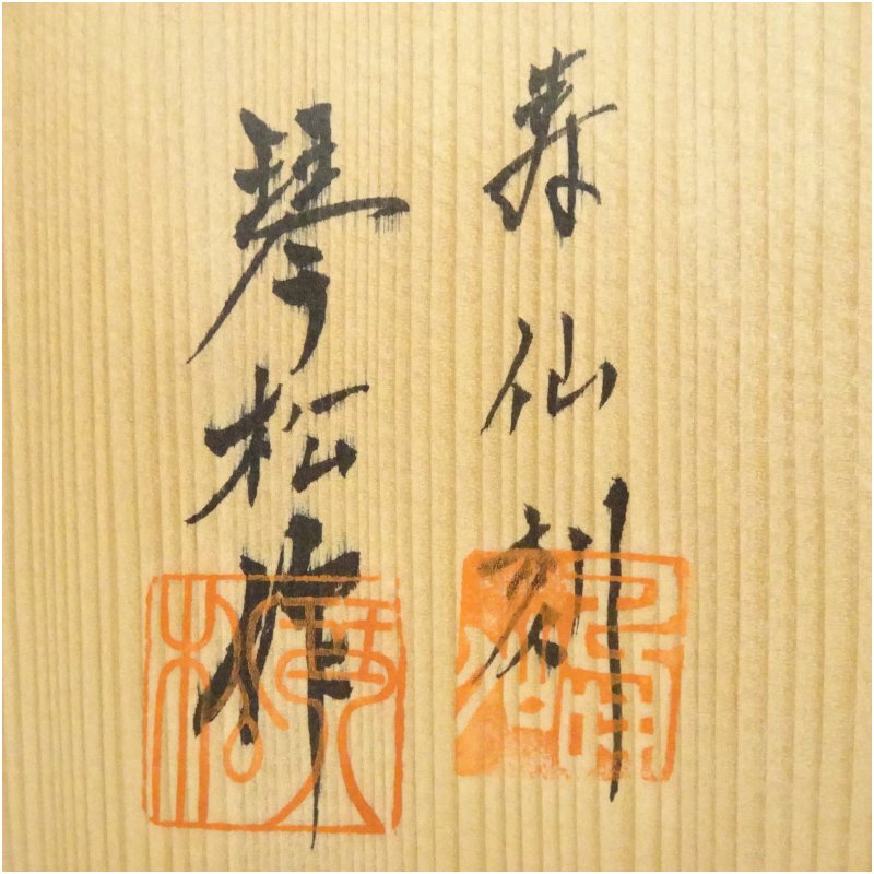 常滑焼 沢田琴松・寿仙造 朱泥松彫茶碗(共箱)