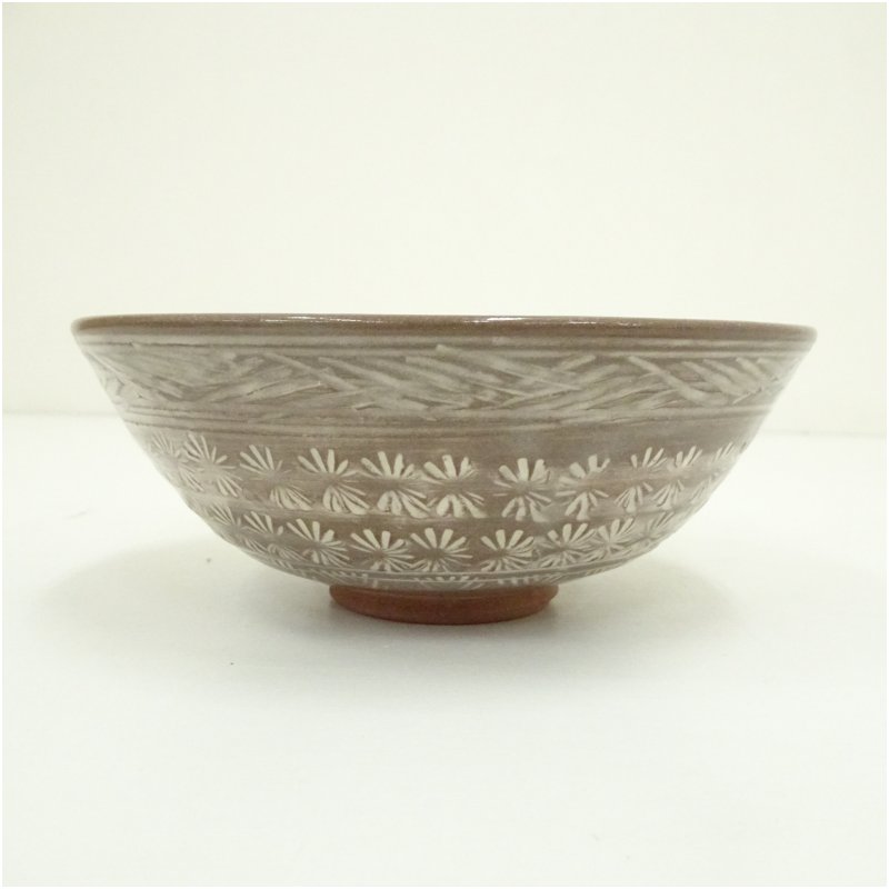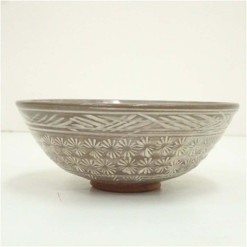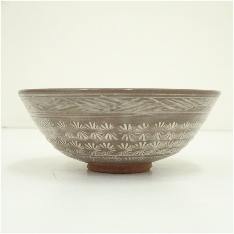 音羽山窯造 刷毛目茶碗(保護箱) [13-250520c-024a]