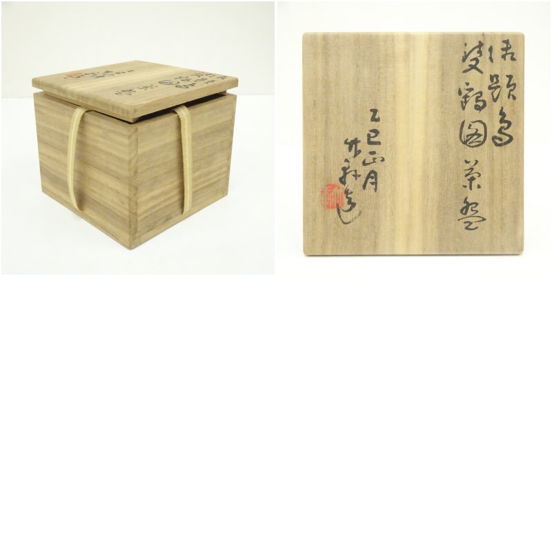 京焼 三浦竹軒造 御題鳥双鶴図茶碗(共箱) [13-250623c-046a]