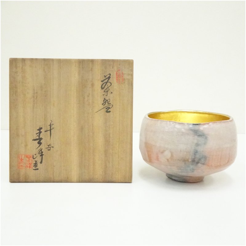 京焼 井上春峰造 内金赤楽茶碗(共箱) [13-250623c-049a]