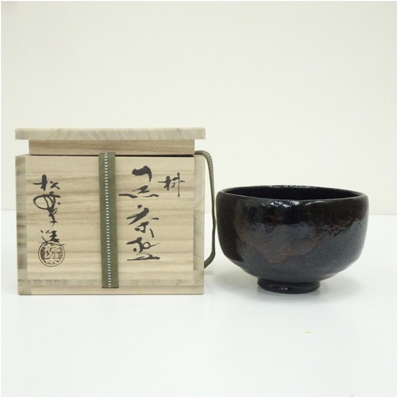 佐々木松楽造 枡黒楽茶碗(共箱)