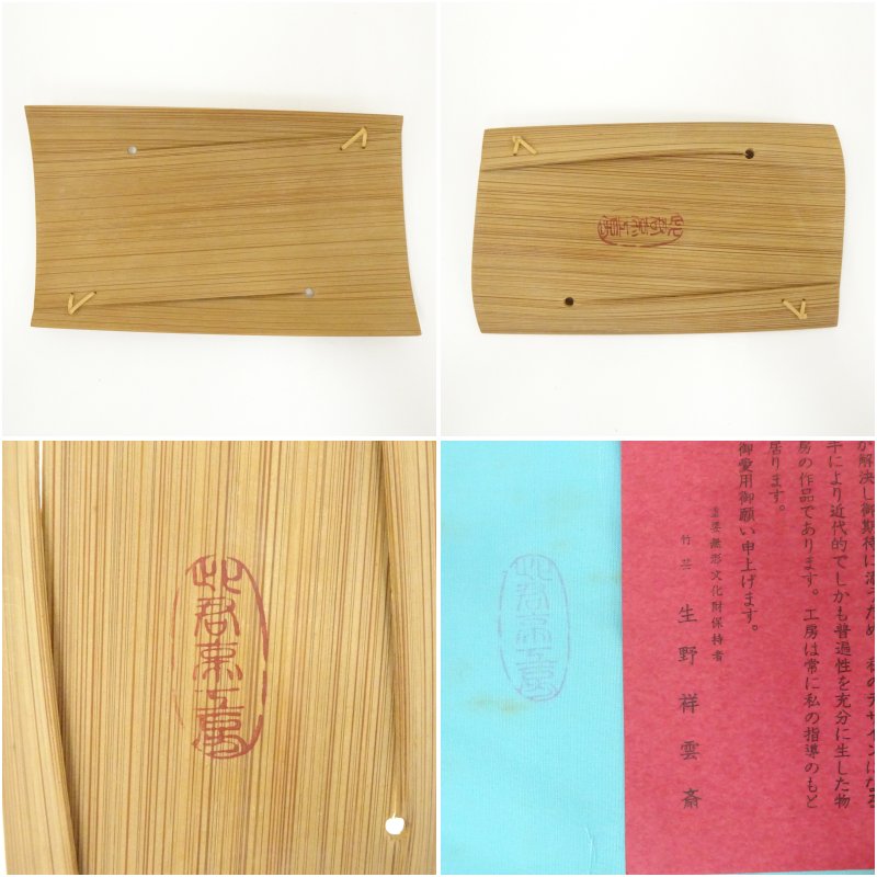 人間国宝 生野祥雲斎監修 比君亭工房造 竹銘々皿5客(共箱)