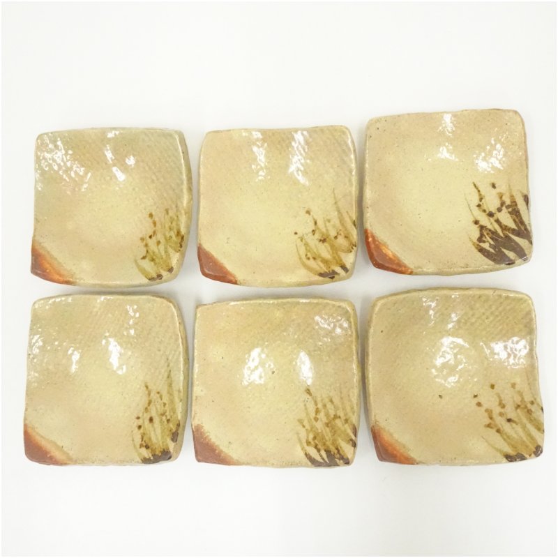 番浦史郎造 鉄絵草文銘々皿6客(共箱)
