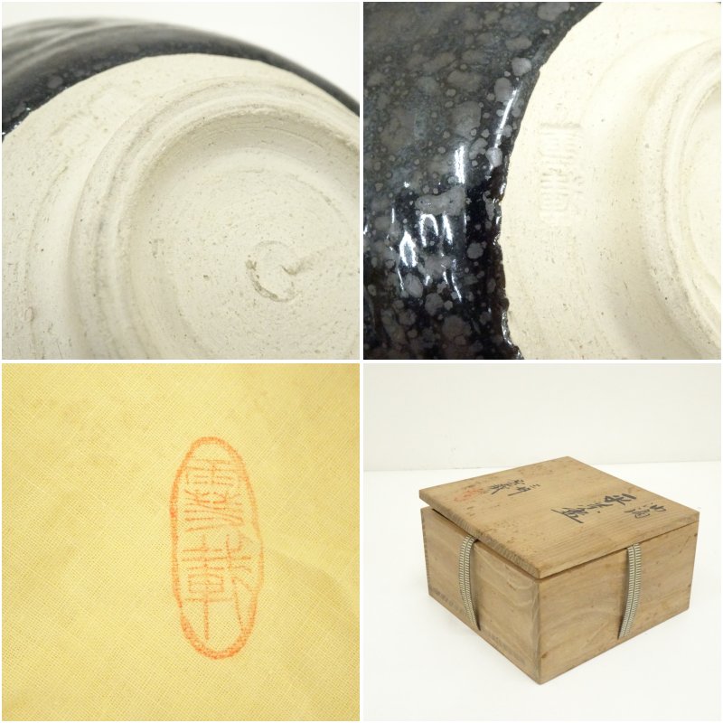三州雪載窯造 油滴平茶碗(共箱) [13-250624c-019a]