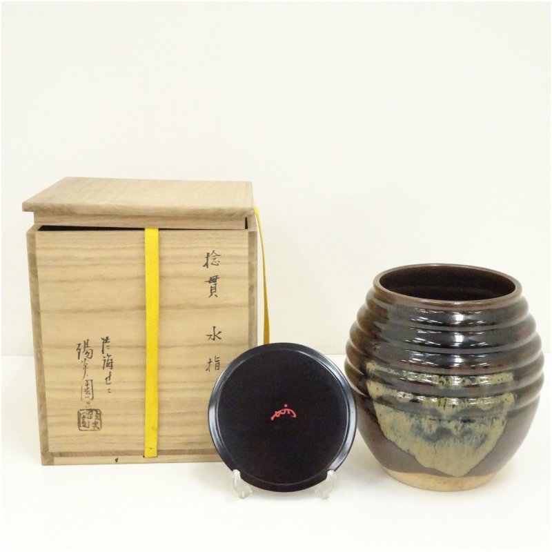 膳所焼 岩崎新定造 捻貫水指(即中斎花押・箱書)(共箱) [13-250624c-035a]
