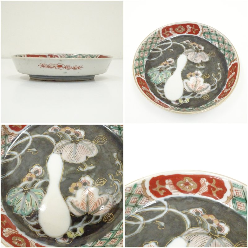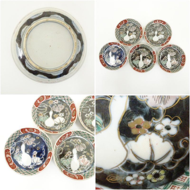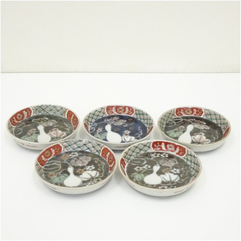 古伊万里 染付色絵瓢箪四寸皿5客 [13-250625c-017a]