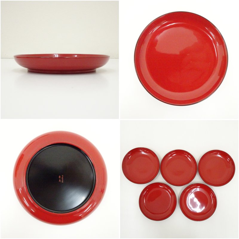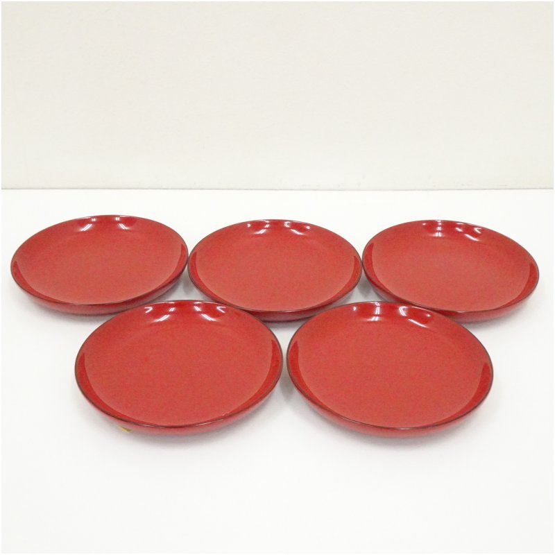 うるし芸 米永造 朱漆塗喜皿 銘々皿5客(共箱) [13-250625c-021a]