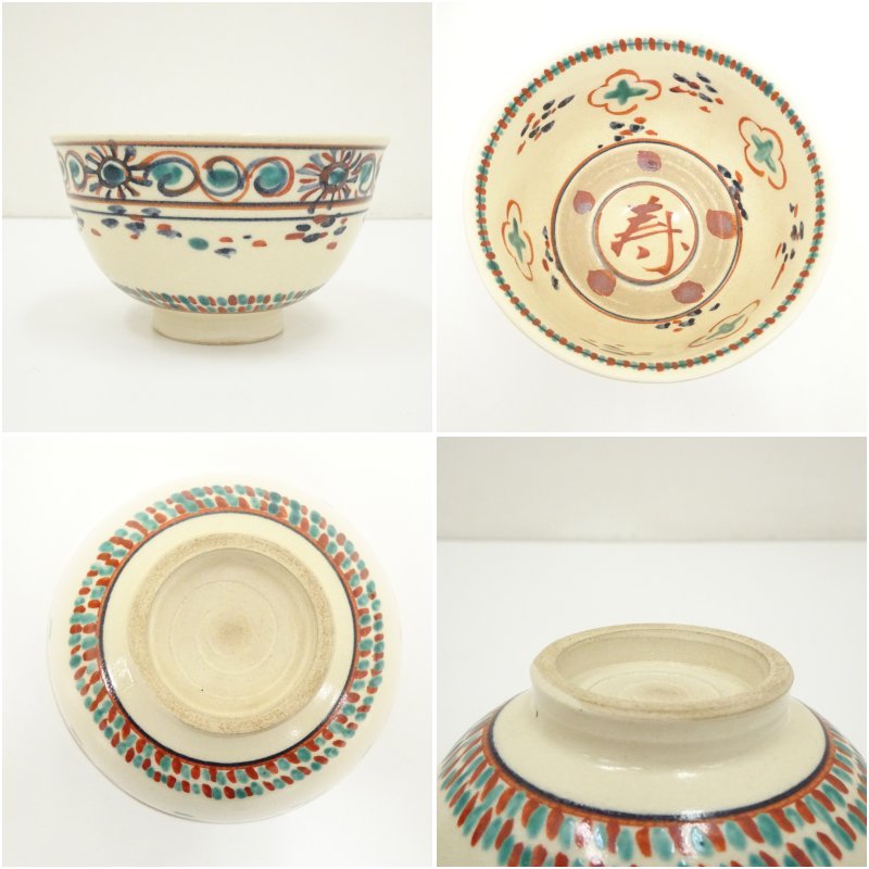 京焼 鳴滝窯 橋本城岳造 紅安南手数茶碗10客(共箱)