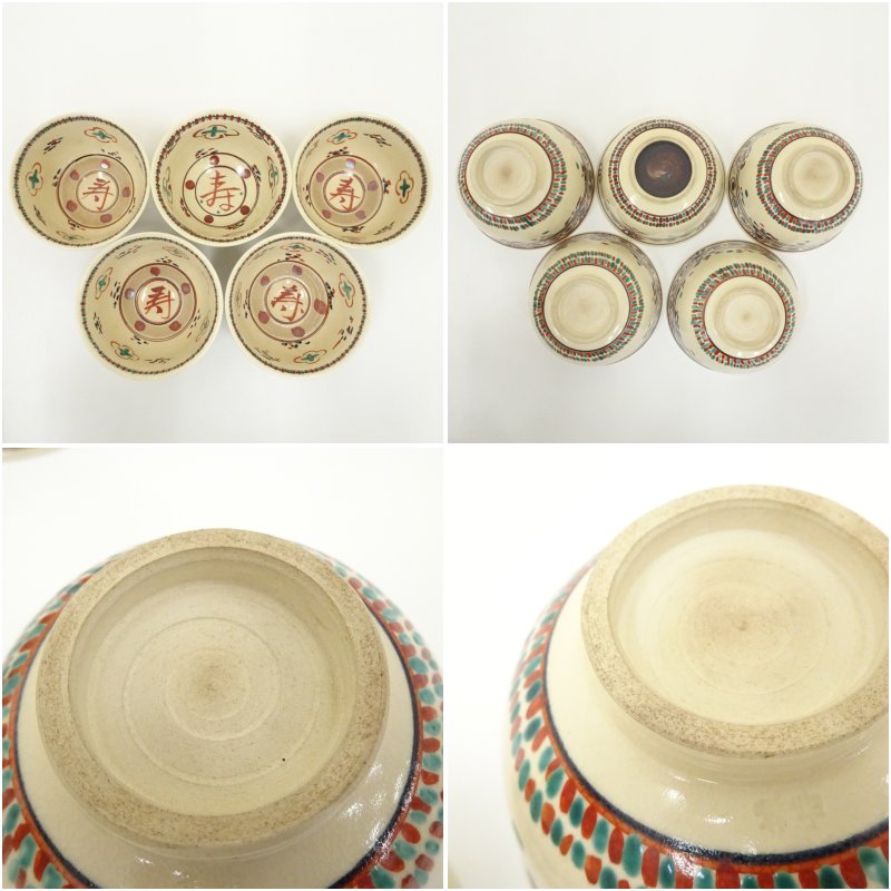 京焼 鳴滝窯 橋本城岳造 紅安南手数茶碗10客(共箱) [13-250625c-028a]