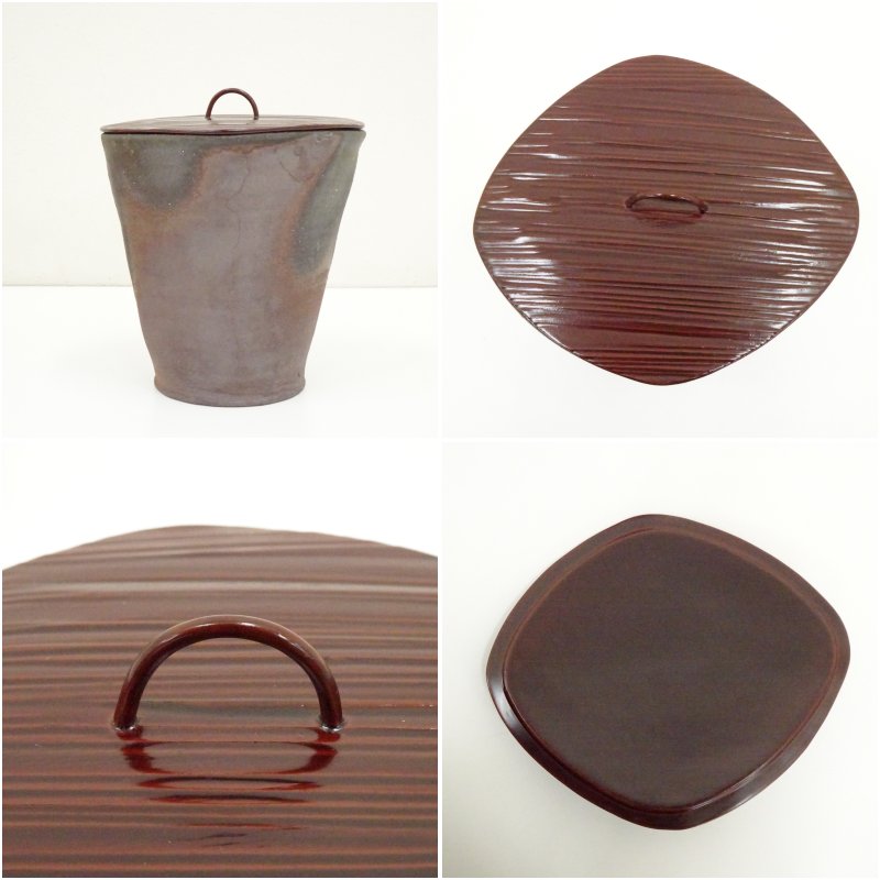越前焼 峰越窯 竹元郁雄造 菱口水指(共箱) [13-250625c-038a]
