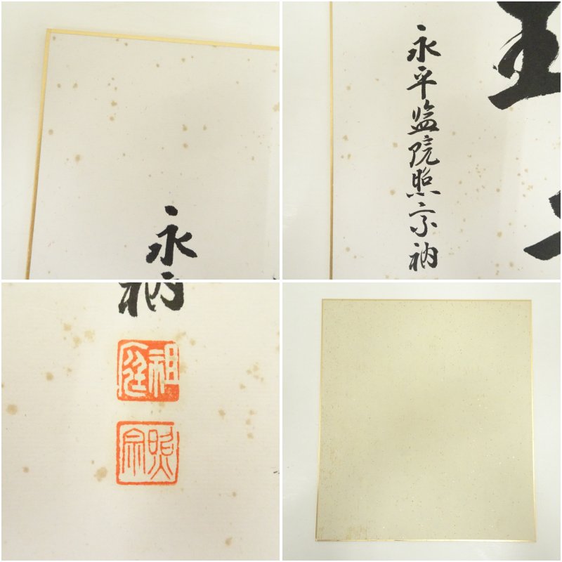 永平寺 上月照宗筆 「瑞光」「浄心」など 肉筆色紙3枚