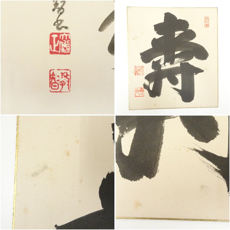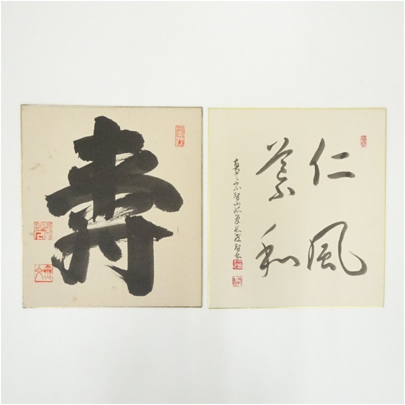 妙心寺 山田無文筆 「寿」一字 など 肉筆色紙2枚 [13-250625c-057a]