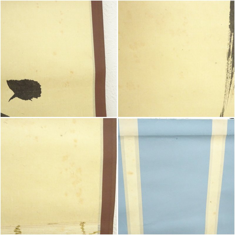 本紙、表具両面八双付近にところどころ薄いシミがあります。