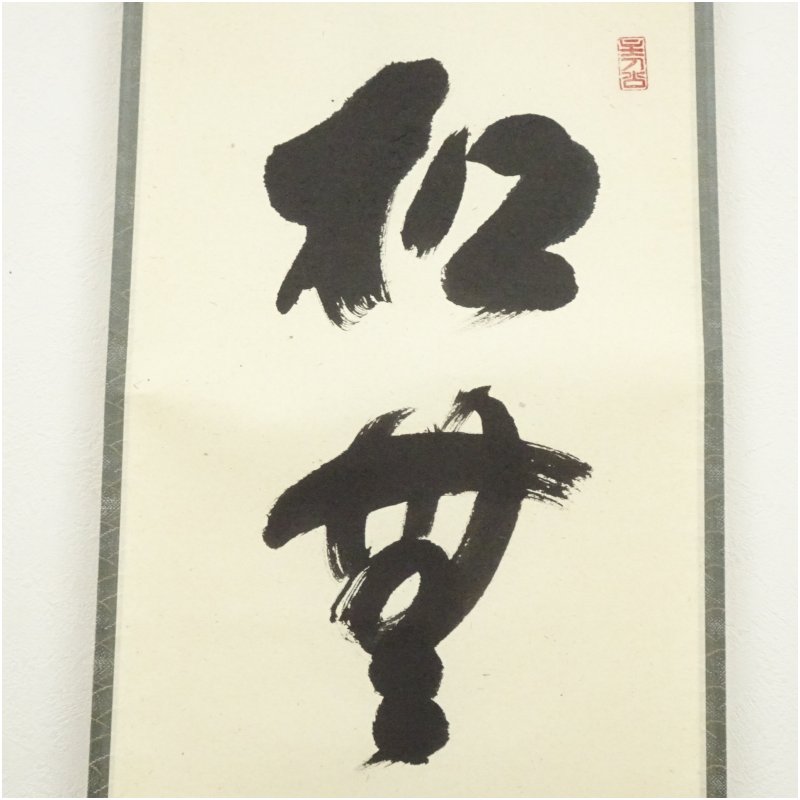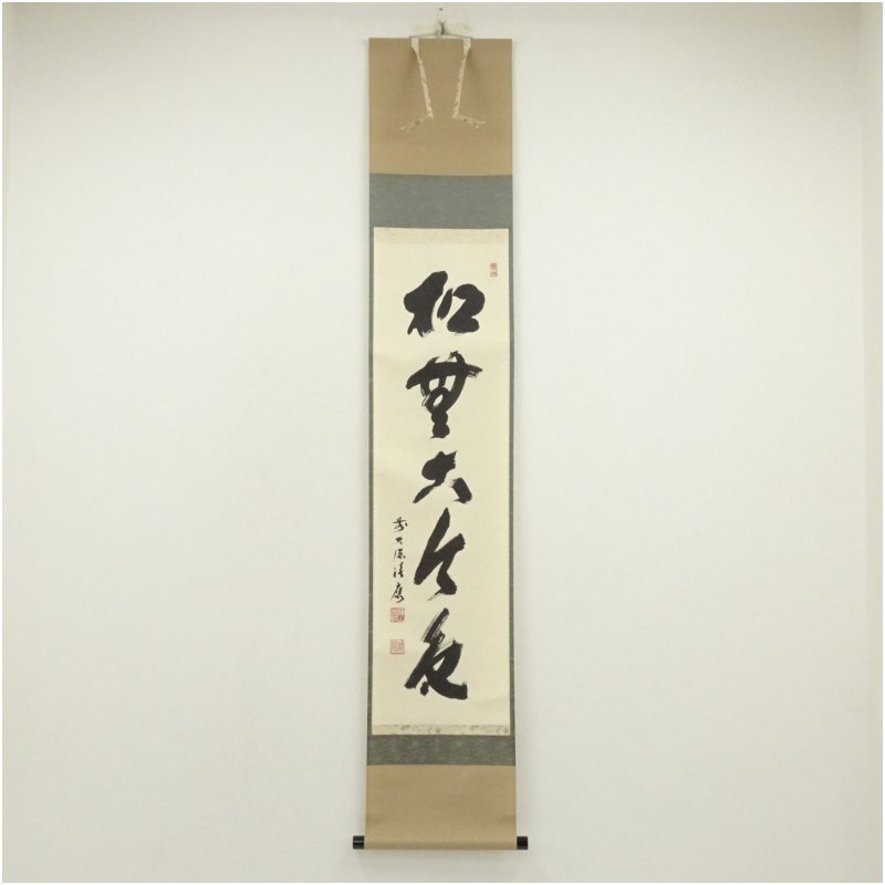 前大徳 福本積應筆 「松無古今色」一行書 肉筆紙本掛軸(保護箱)