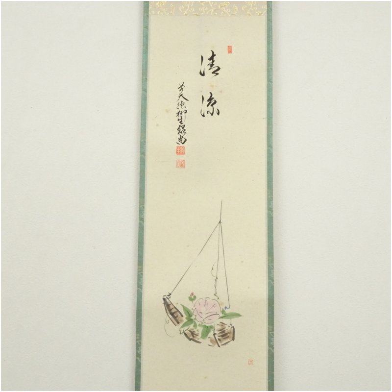 前大徳 橋本紹尚筆 「五月晴」晶子筆 朝顔画賛 肉筆紙本掛軸(共箱) [13-250626c-017a]