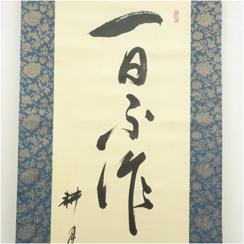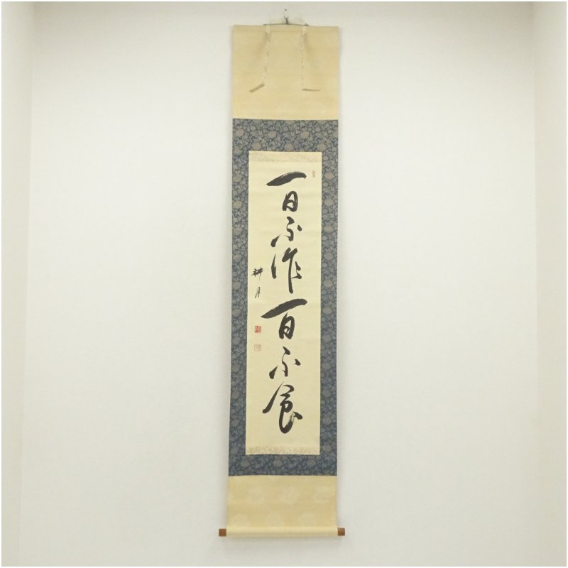 正眼寺 谷耕月筆 「一日不作百不食」一行書 肉筆紙本掛軸(共箱) [13-250626c-018a]