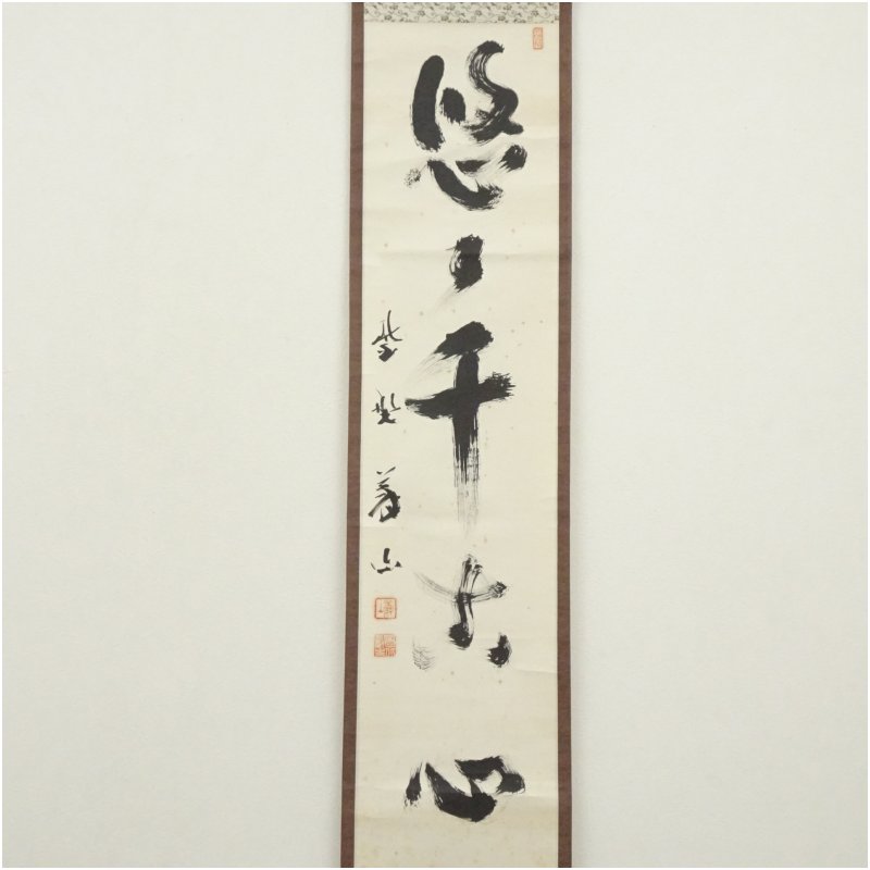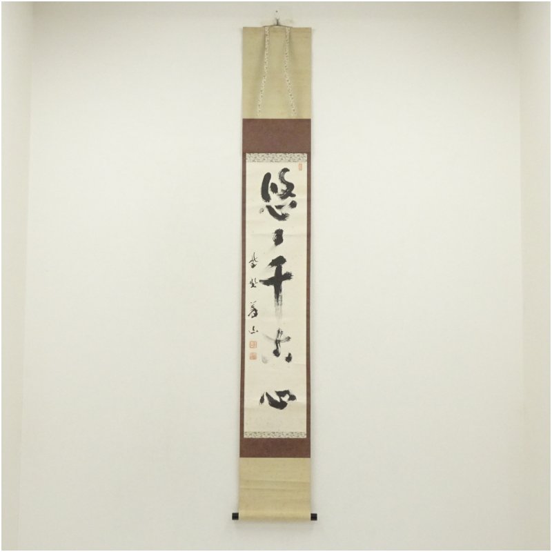 大徳寺 上田義山筆 「悠々千古心」一行書 肉筆紙本掛軸(共箱) [13-250626c-019b]