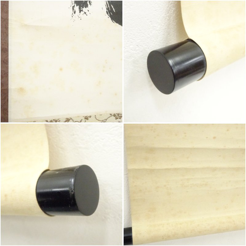 本紙と表具両面に全体的にシミがあり、巻き皺による折れが少しあります。