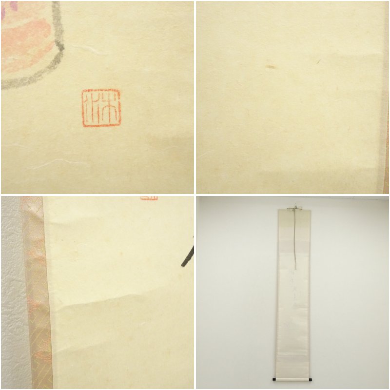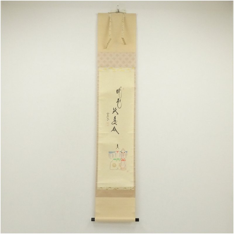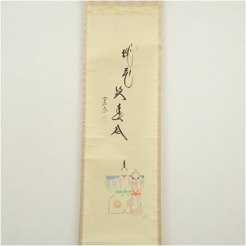 前大徳 西垣大道筆 「桃花笑春風」立雛画賛 肉筆紙本掛軸(共箱) [13-250626c-024a]