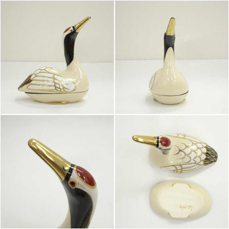 京焼 京峰造 色絵鶴香合(共箱) [13-250626c-032a]