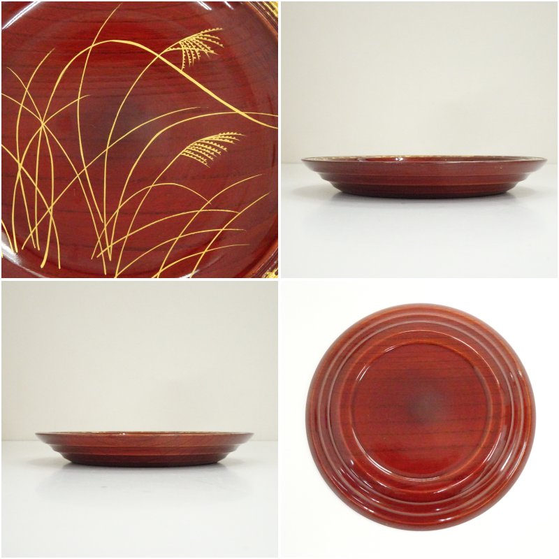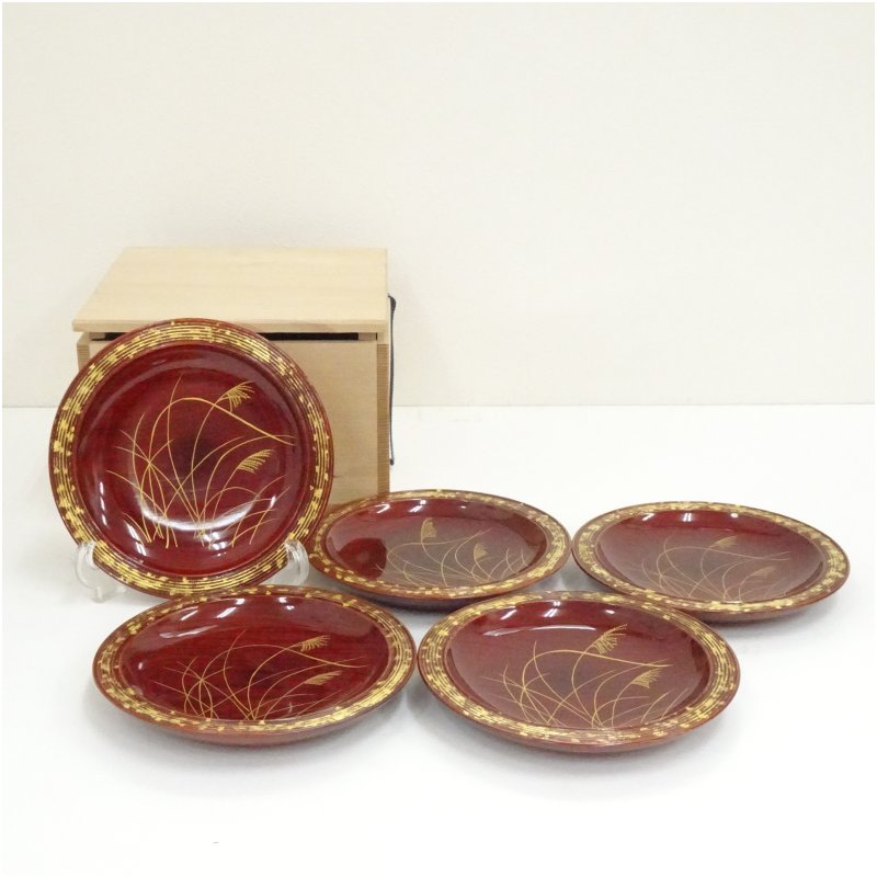 溜塗稲穂図蒔絵銘々皿5客(保護箱)