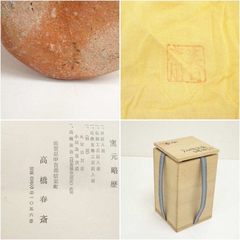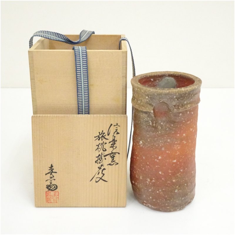 信楽焼 高橋春斎造 旅枕掛花入(共箱)