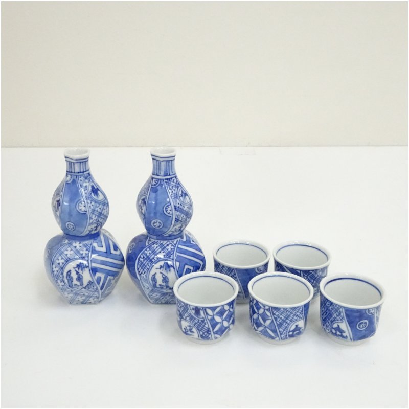 九谷焼 阿古窯造 祥瑞捻り文酒器揃(共箱) [13-250626c-053a]