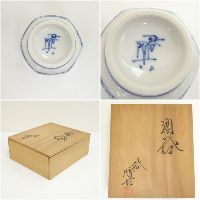 九谷焼 阿古窯造 祥瑞捻り文酒器揃(共箱)