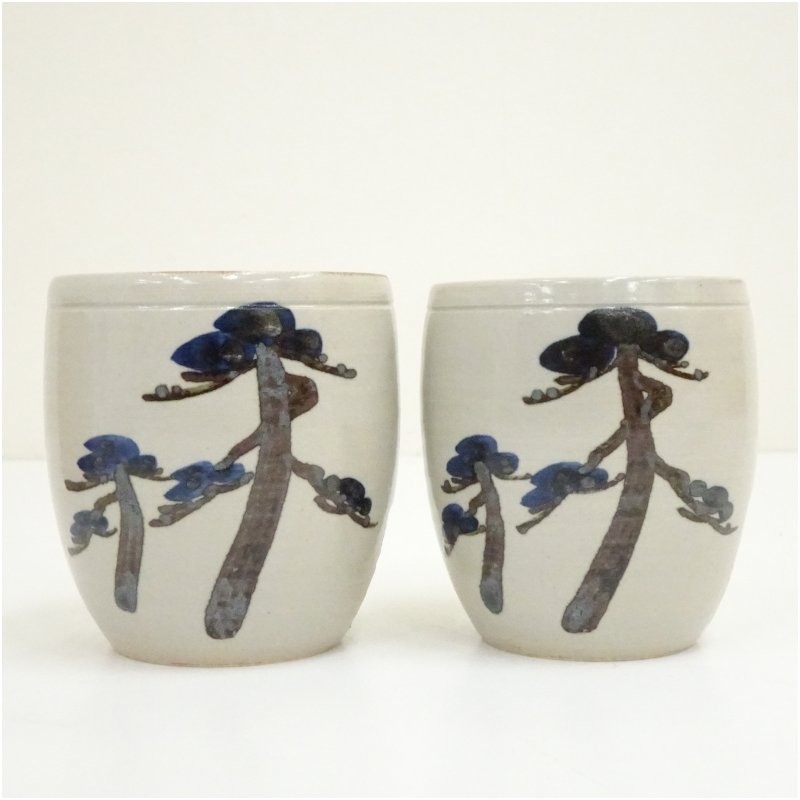 京焼 澤村陶哉造 松之画夫婦湯呑(共箱) [13-250626c-055a]