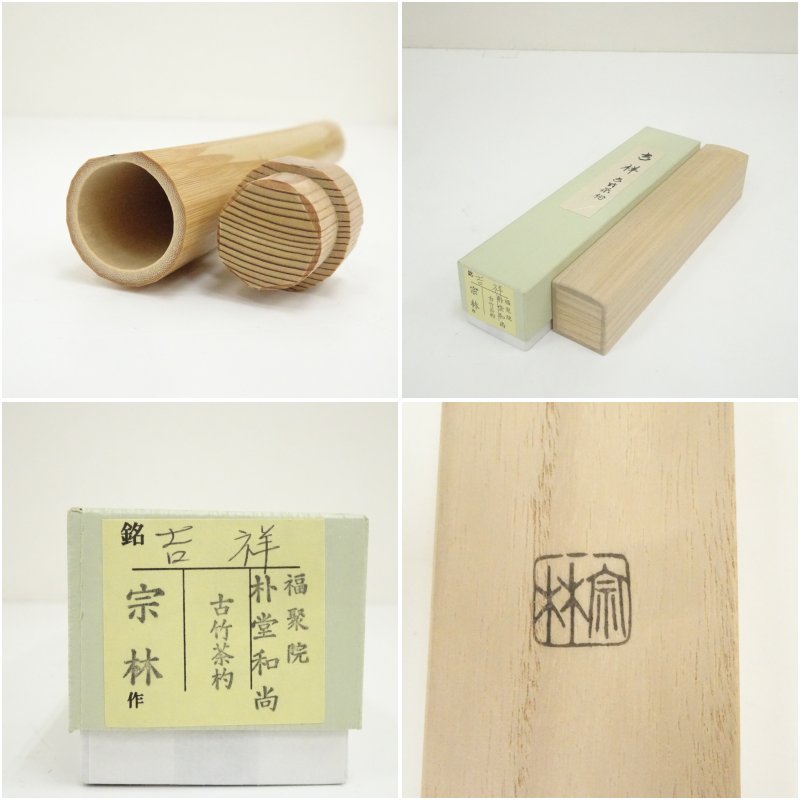 宗林造 古竹茶杓(銘:吉祥)(前大徳 佐藤朴堂書付)(共箱)