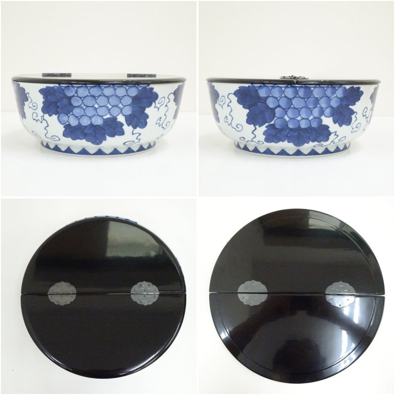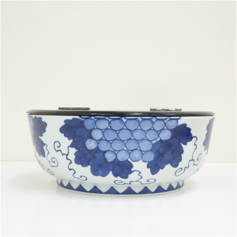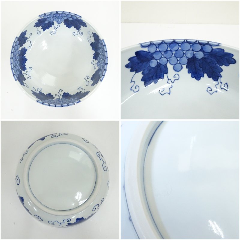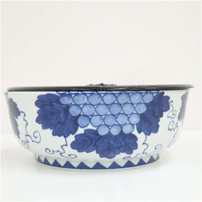 京焼 手塚景雲造 染付葡萄文水指(共箱) [13-250626c-067a]