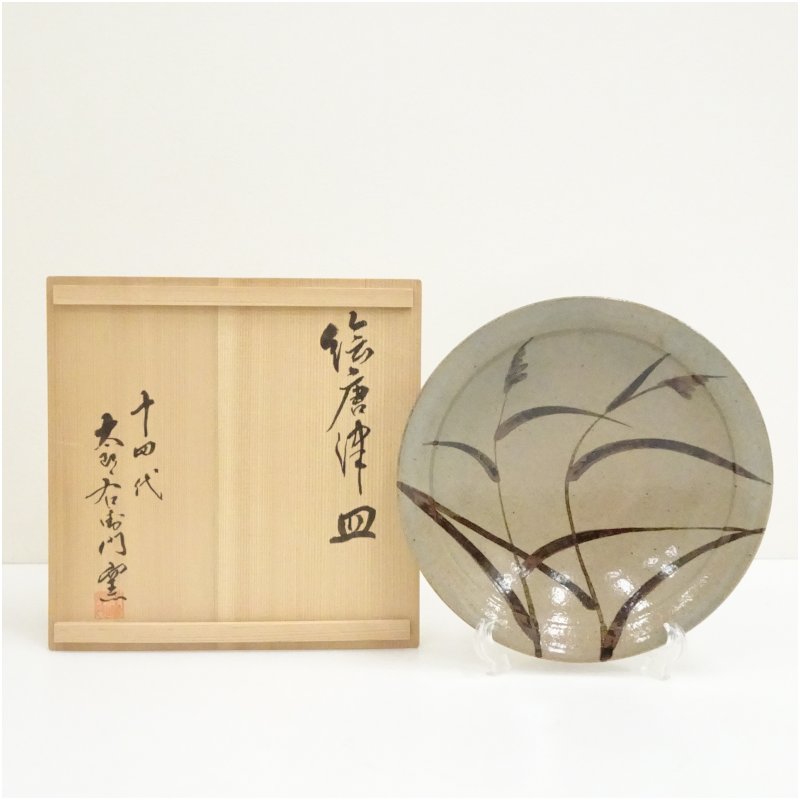唐津焼 十四代 中里太郎右衛門窯造 絵唐津皿(共箱)