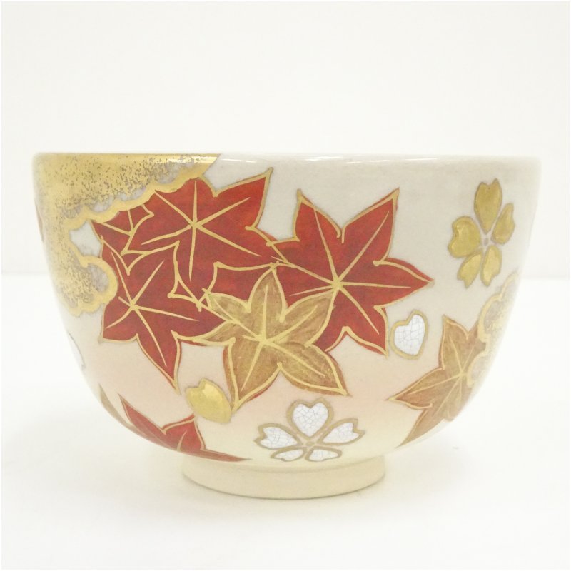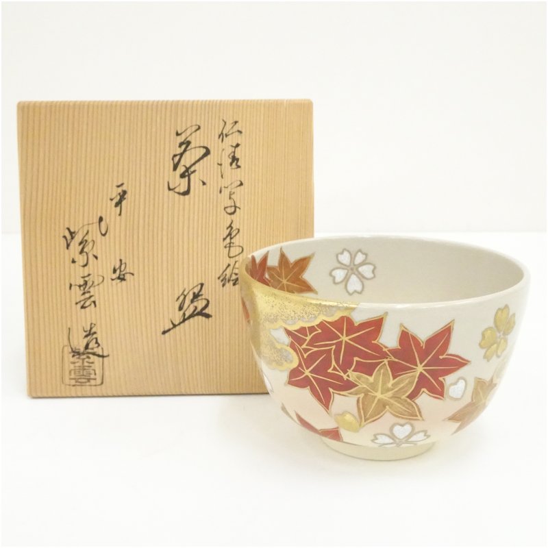 京焼 橋本紫雲造 仁清写紅葉絵茶碗(共箱)