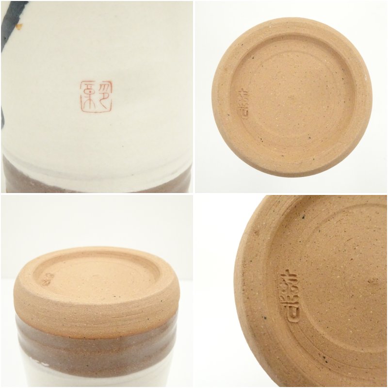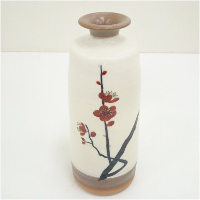 京焼 森野嘉光造 堂本印象下絵 紅梅花瓶(共箱) [13-250627c-016a]