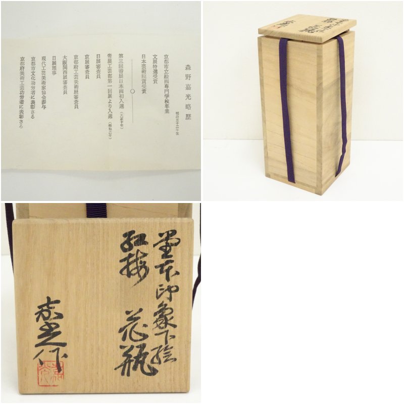 京焼 森野嘉光造 堂本印象下絵 紅梅花瓶(共箱)