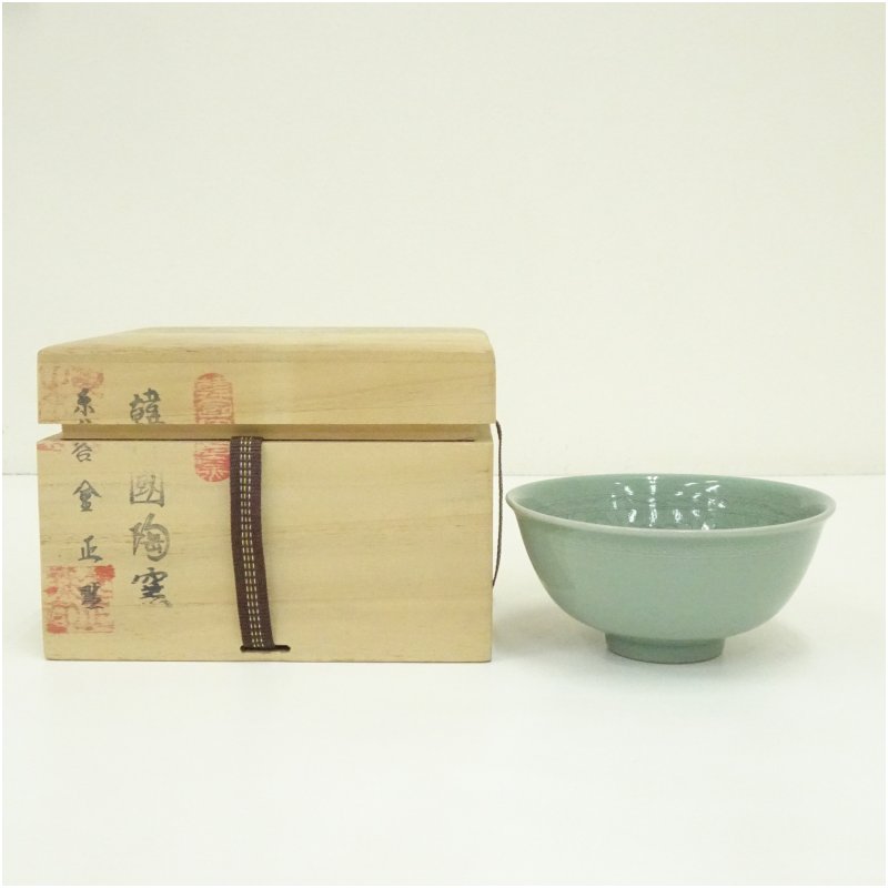 韓国陶窯 東谷 金正黙造 高麗青磁茶碗(共箱)