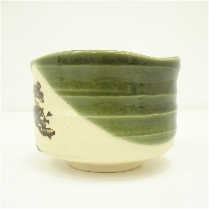 市川染五郎絵付 織部茶碗(共箱) [13-250627c-033a]