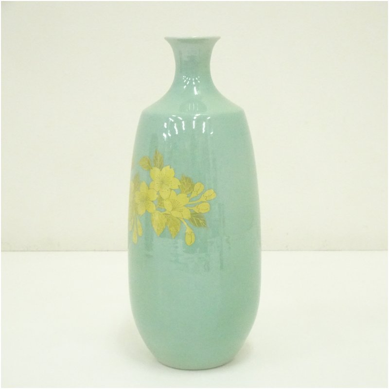 九谷焼 人間国宝 吉田美統造 釉裏金彩桜花文花瓶(共箱) [13-250627c-037a]