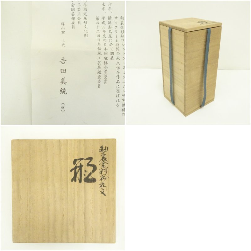 九谷焼 人間国宝 吉田美統造 釉裏金彩桜花文花瓶(共箱)