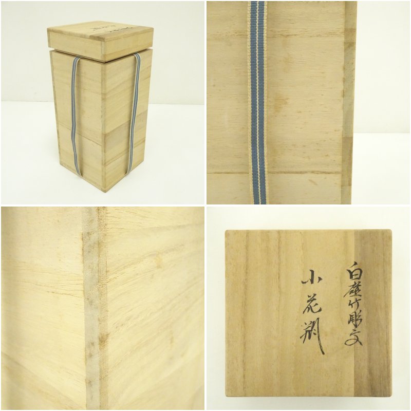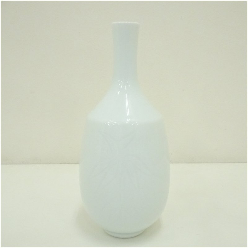 人間国宝 井上萬二造 白磁竹彫文小花瓶(共箱)