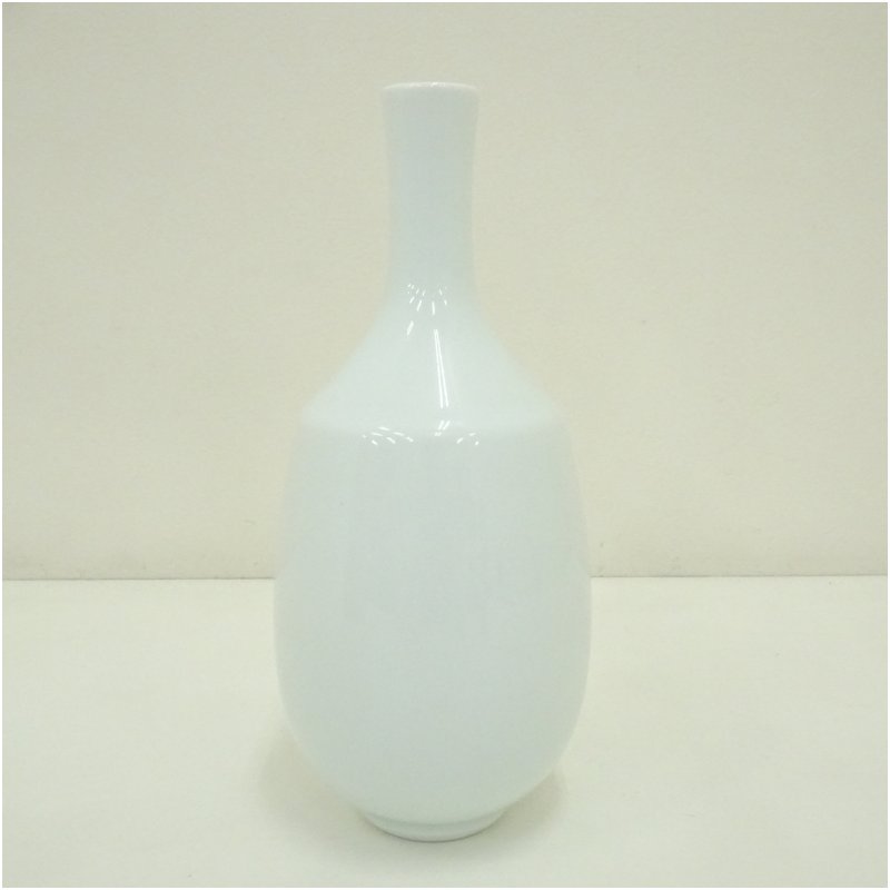 人間国宝 井上萬二造 白磁竹彫文小花瓶(共箱) [13-250627c-038a]
