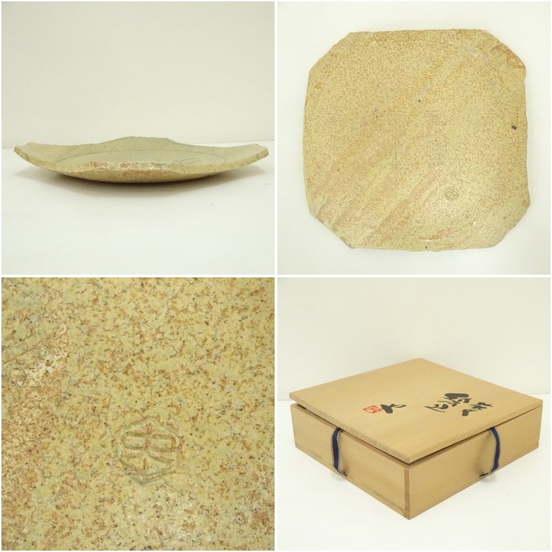 番浦史郎造 萩文絵皿(共箱)