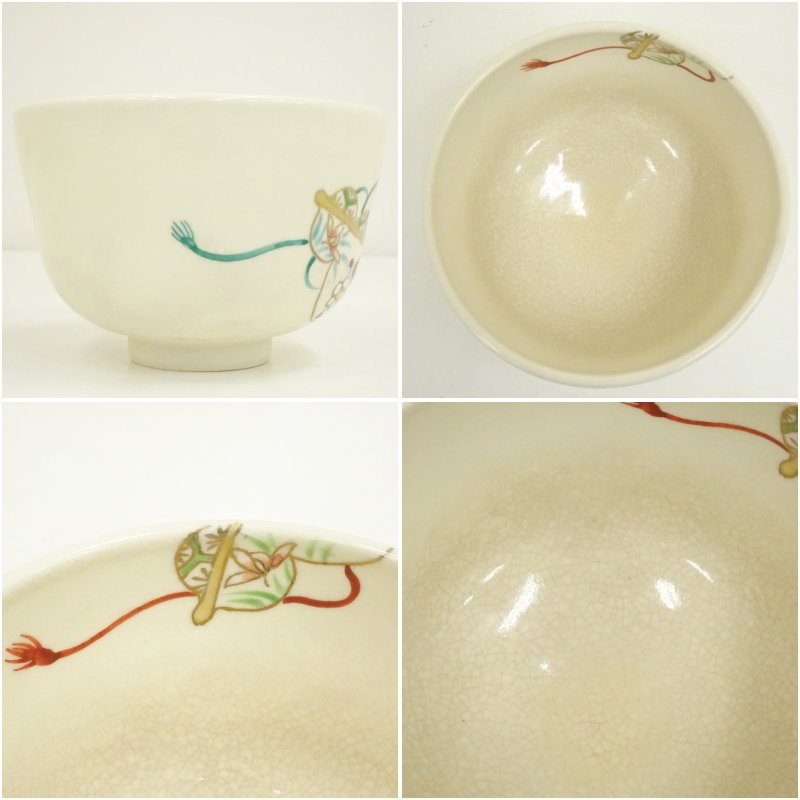 京焼 八木海峰造 色絵瓢箪四君子茶碗(箱付)