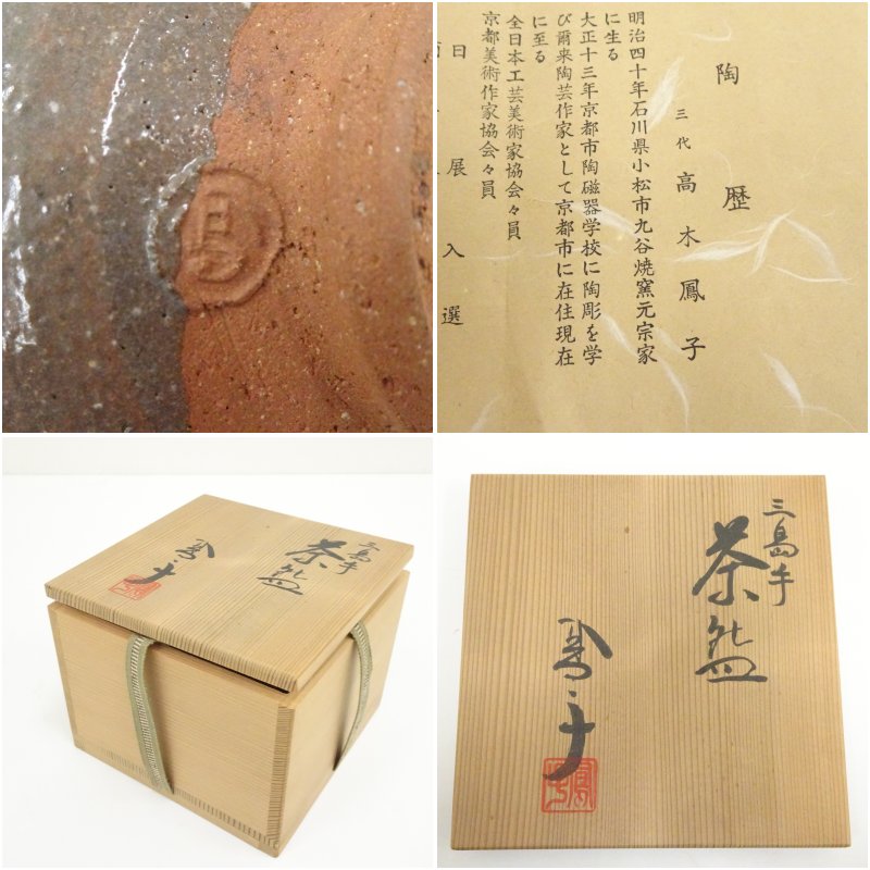 三代 高木鳳子造 三島茶碗(共箱) [13-250701c-048a]
