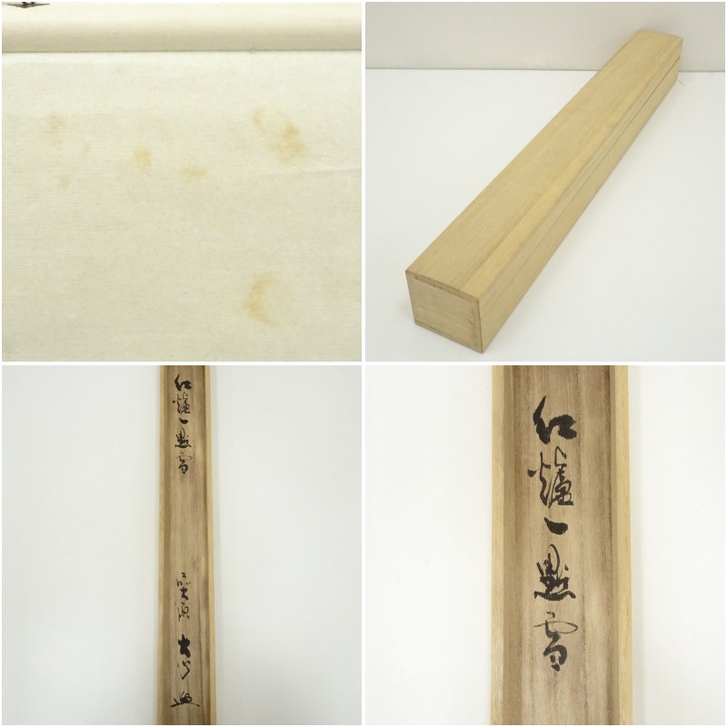 本紙、表具裏面、軸棒などにところどころシミがあります。