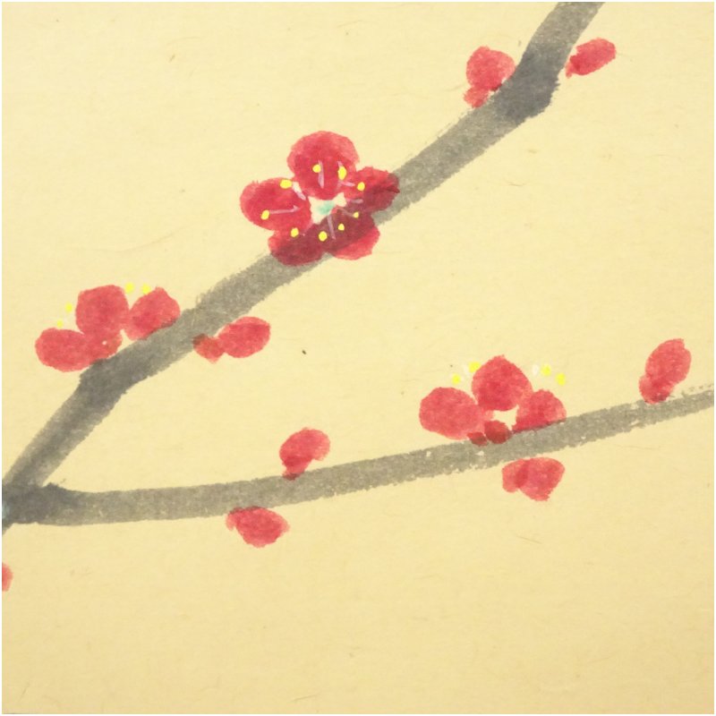 前大徳 戸上明道筆 「一朶香」仲春洋筆 紅梅画賛 肉筆紙本掛軸(共箱)